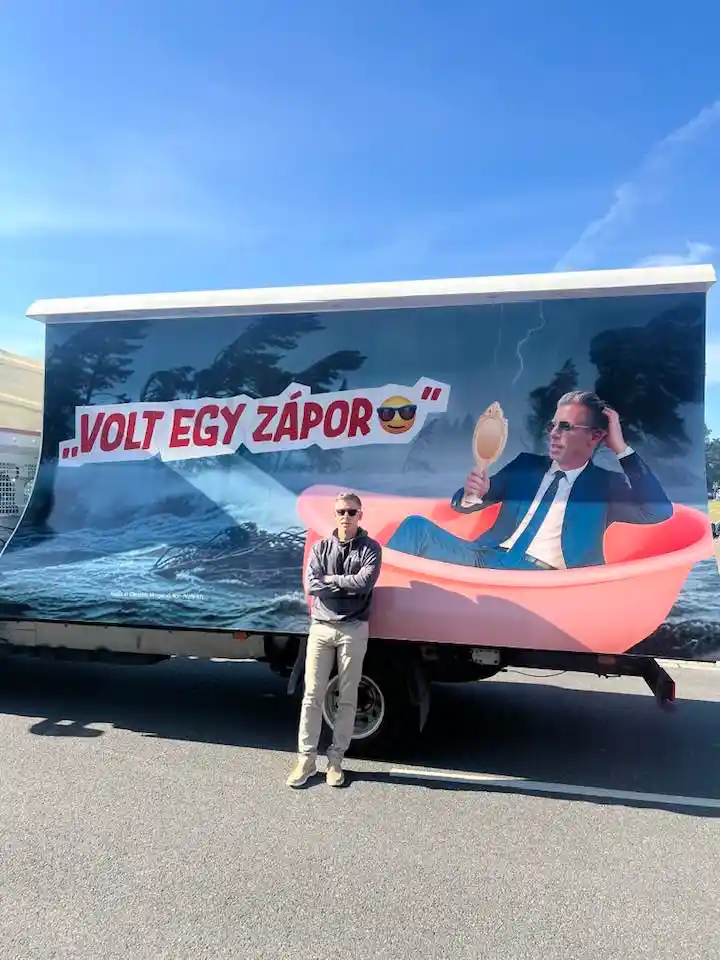 Budapest – 2025. július 14. Ismét az utcákon láthatók azok a mozgó plakátok, amelyek Magyar Pétert próbálják lejáratni. Az egyik…